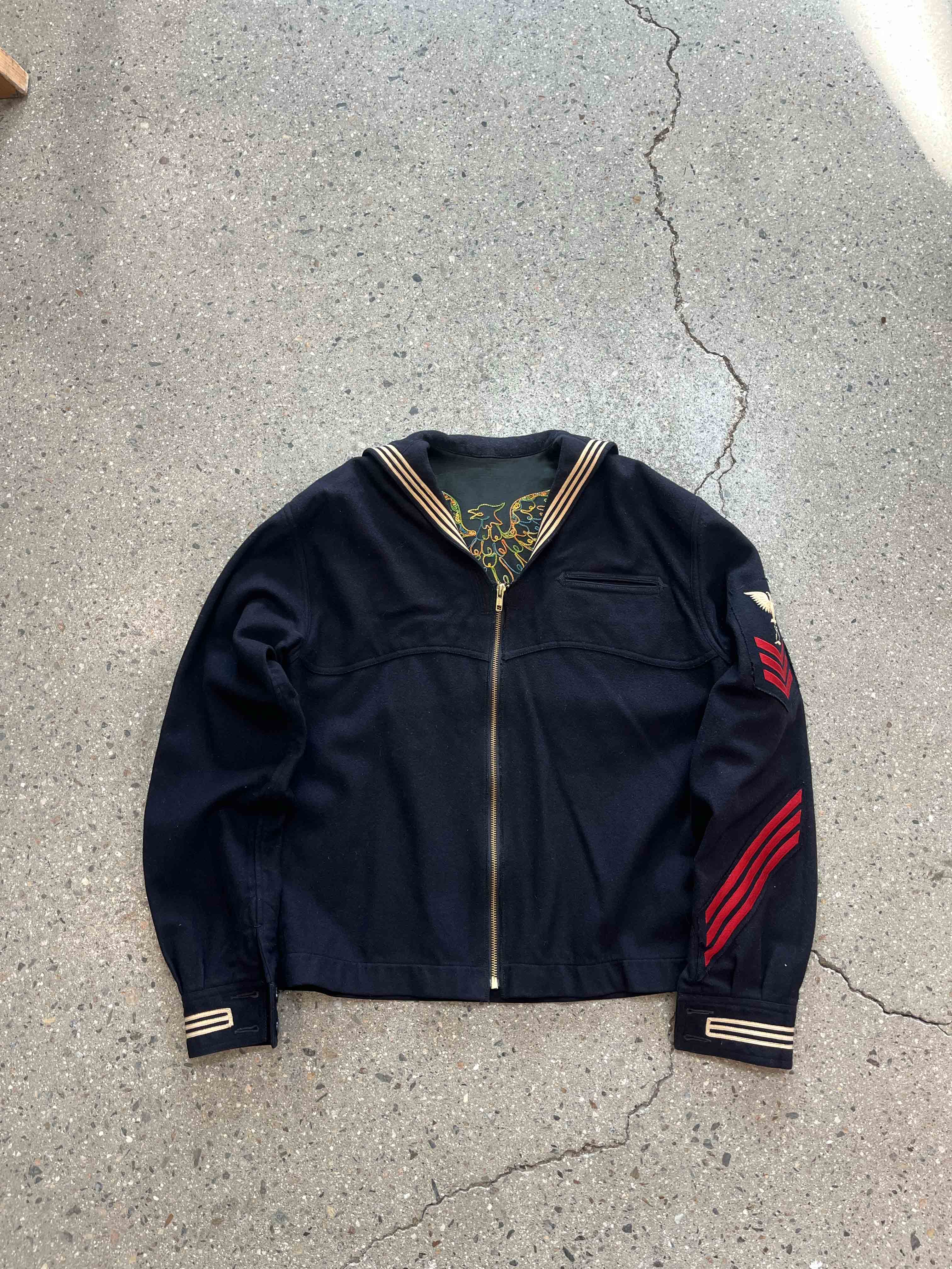 vintage 1950's us navy wool pullover uniform with embroidered (102size)